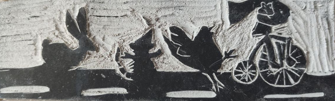Sometimes I like to make lino cuts, though I enjoy the carving much more than the printing. Below’s some stuff i scratched into plates. Most of the rectangle ones are from my ongoing project to make a tiny bookmark for each book I read. If you happen to like something, send me an e-mail and maybe I’ll send you one in a letter? :) I think that would be kind of cute, and also force me to do an actual print sometime.